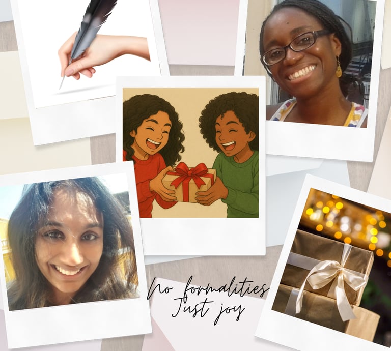 We started this little gifting studio because we’ve been best friends forever—and lifelong rivals in the art of out-gifting each other. One of us can spend hours wrapping a present like it’s couture, and the other writes cards so poetic they’re practically keepsakes.